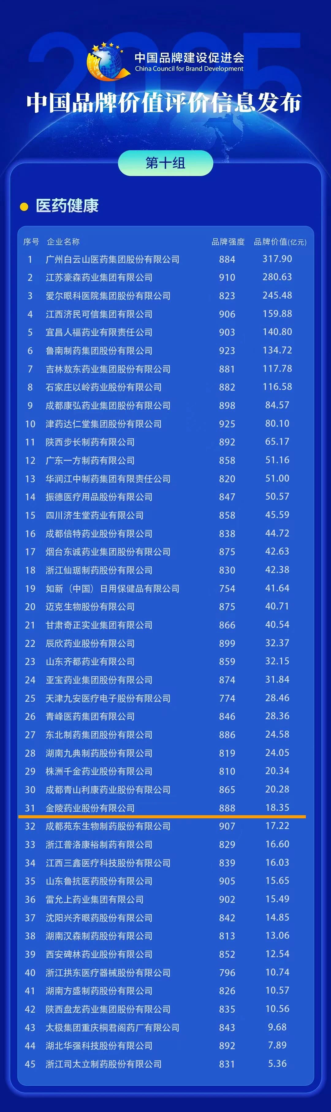 5月10日,由中國品牌建設(shè)促進會、中國資產(chǎn)評估協(xié)會等權(quán)威機構(gòu)聯(lián)合發(fā)布的《2025中國品牌價值評價信息》揭曉,公司以品牌強度888分,位列醫(yī)藥健康類第13名,較去年躍升11...